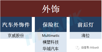 相对于车身及底盘结构件来说,内外饰作用相对简单统一,但分布范围广、涉及细分种类较多。
