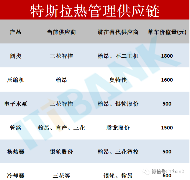 冷媒管路:翰昂供应,间接供应商腾龙股份,供应部分硬管,单车价值量估算约1500元以上;