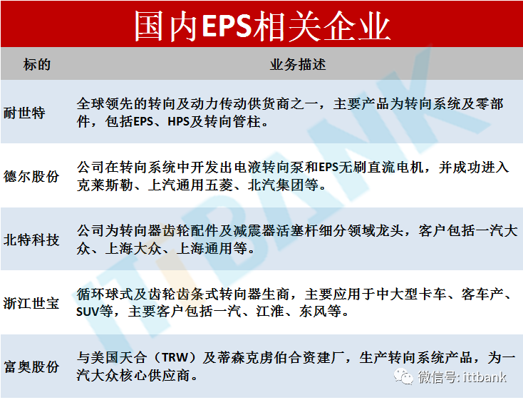 特斯拉供应商:博世,国内EPS领域的供应商主要是耐世特等。