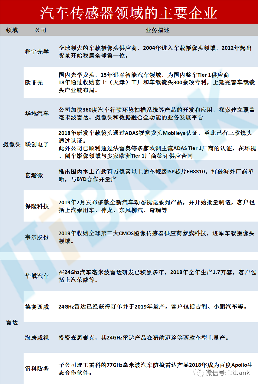 3)、77G毫米波雷达:国内头部的公司包括华域汽车、德赛西威、保隆科技等;