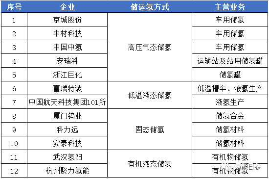 表2为我国主要储运氢企业。