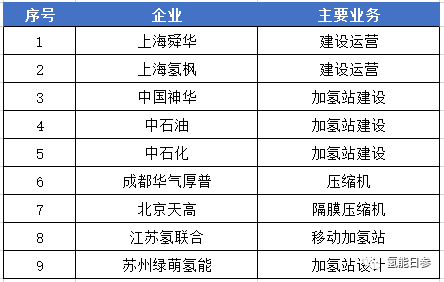 表3为我国主要加氢站企业。