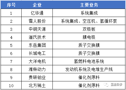 表4 燃料电池企业