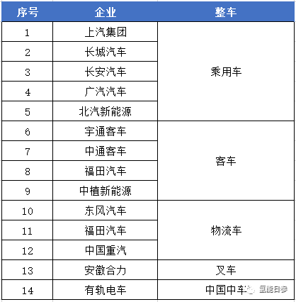 表5 燃料电池整车企业
