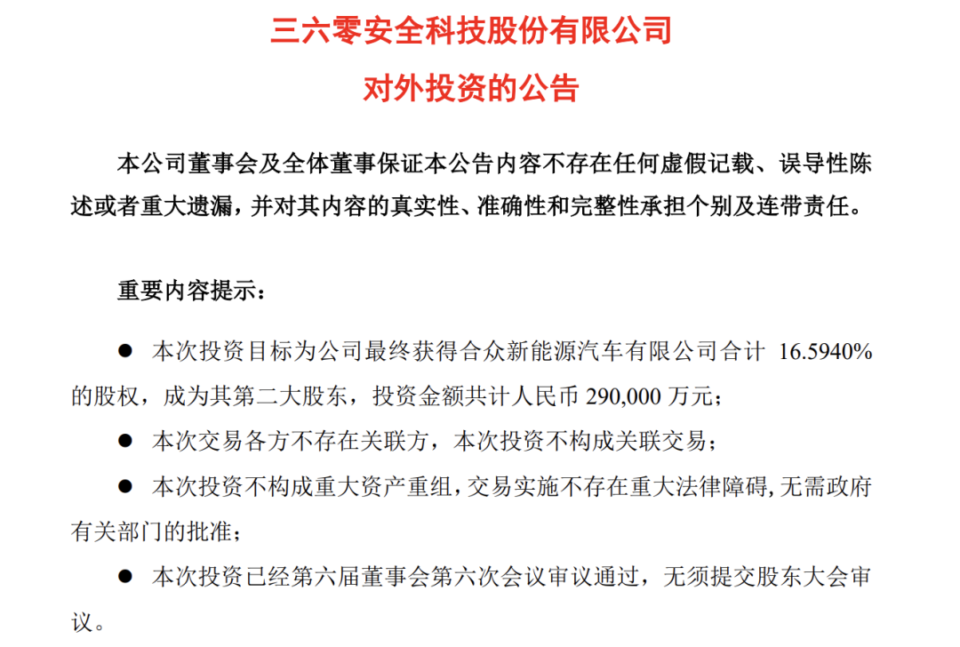 哪吒汽车从6月份开始就实现稳定增长,除了与市场本身发展情况有关,与360的合作也存在一定关联。5月10日,360公司宣布携手哪吒汽车进军智能汽车领域,360董事长周鸿祎公开表示,360不会独立造车,将会与哪吒汽车参与合作造车。10月18日,360公司发布公告,拟以自有资金29亿元入股合众新能源汽车有限公司(下称“哪吒汽车”),360将间接合计持有哪吒汽车16.594%股权,成为哪吒汽车第二大股东。或是360公司的加入,更加稳定了哪吒汽车持续发展的稳定。