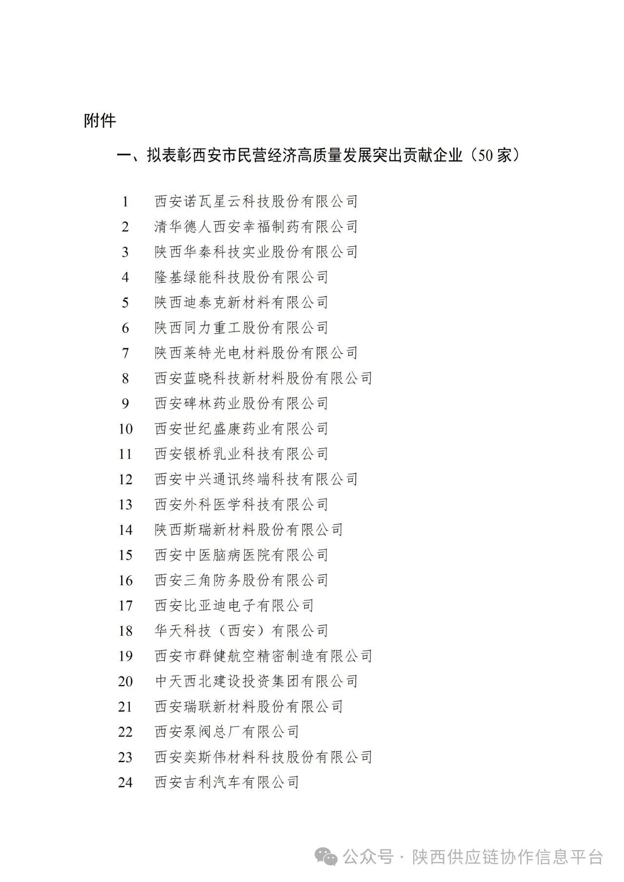 1、拟表彰西安市民营经济高质量发展突出贡献企业(50家)