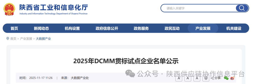 根据《关于开展2025年数据管理能力成熟度评估贯标试点企业申报工作的通知》(陕工信发〔2025〕29号)安排,经各有关单位推荐,省工信厅组织专家评审和研究,现对拟列为2025年数据管理能力成熟度评估贯标试点企业名单进行公示,如有异议,请书面反馈至省工信厅(大数据产业处)。