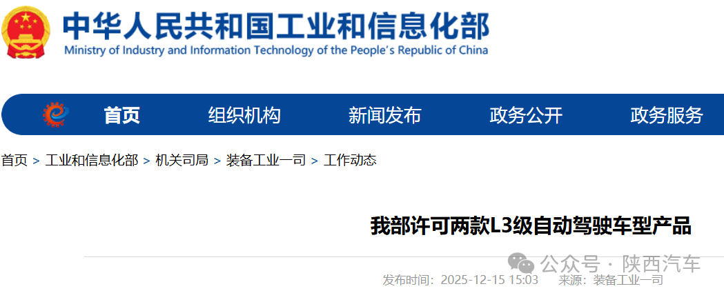 15日,工业和信息化部正式公布我国首批L3级有条件自动驾驶车型准入许可,两款分别适配城市拥堵、高速路段的车型将在北京、重庆指定区域开展上路试点,标志着我国L3级自动驾驶从测试阶段迈入商业化应用的关键一步。