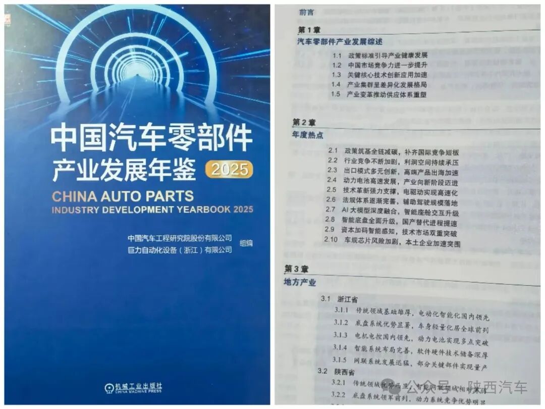 作为覆盖汽车全产业链的权威工具书,《年鉴》设有综述篇、年度热点篇、政策法规篇、子行业发展篇、典型企业篇、大事记篇、产业图谱篇七大板块,搭建起 “政、产、学、研、金、服” 全方位信息沟通桥梁。此次陕西 28 家企业入选,不仅为企业融入全国汽车产业链上下游对接合作开辟了重要通道,更将进一步推动政企、整零、零零间的深度对接,助力产业链实现互联、互通、互惠。