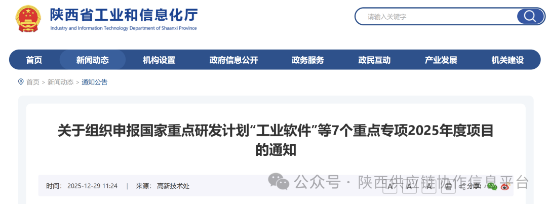 近日,工业和信息化部在“国家科技管理信息系统公共服务平台”发布了《关于发布国家重点研发计划“工业软件”等7个重点专项2025年度项目申报指南的通知》。为做好申报推荐工作,现就有关事项通知如下: