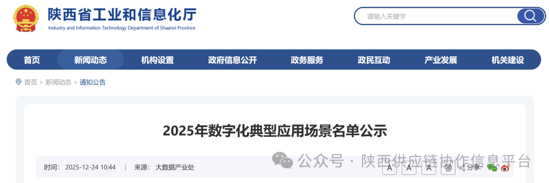 根据《关于征集2025年数字化应用场景典型案例的通知》(陕工信发〔2025〕68号)安排,经各设区市工业和信息化主管部门推荐,省工业和信息化厅组织专家评审和研究,现对拟列为2025年数字化典型应用场景的名单进行公示,如有异议,请书面反馈至省工信厅(大数据产业处)。