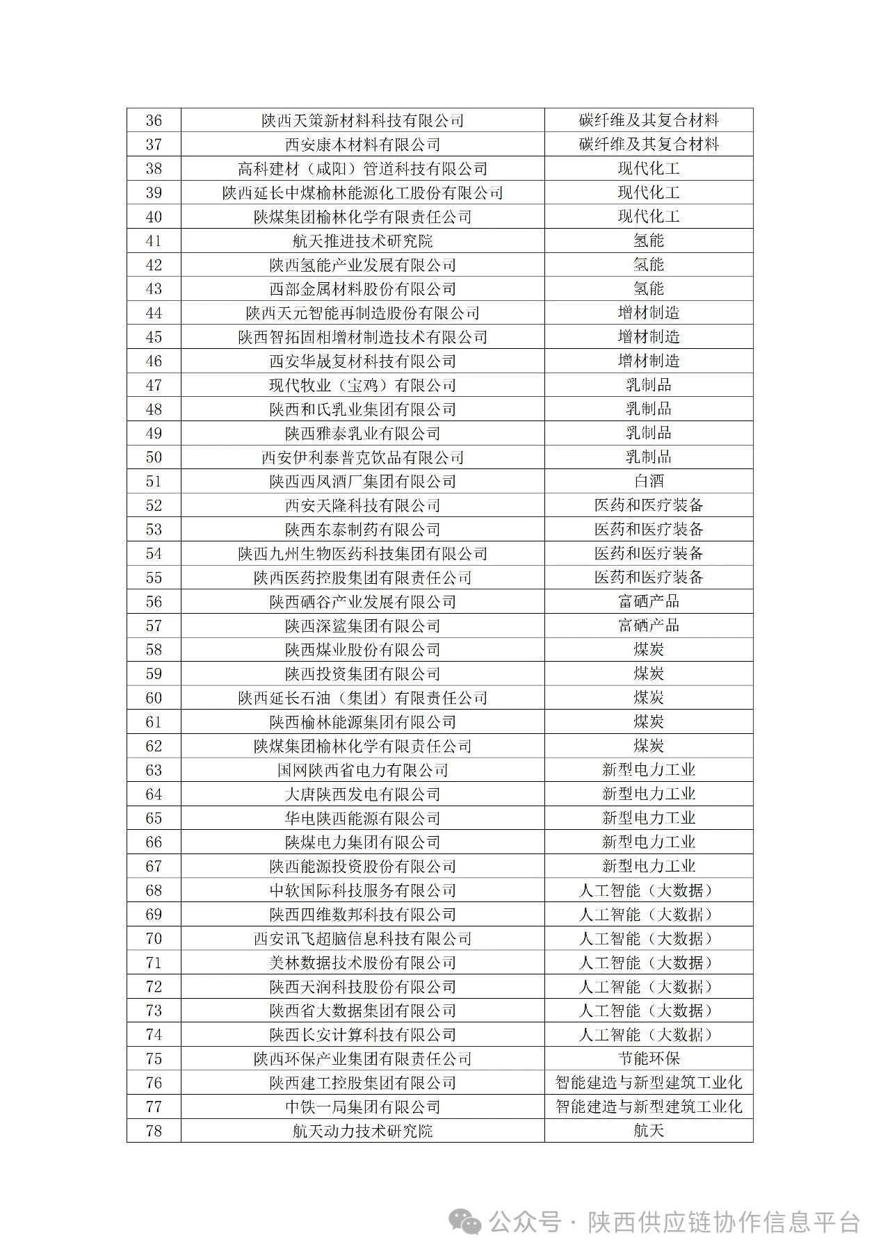 附 件: 陕西省重点产业链链主企业拟确定名单