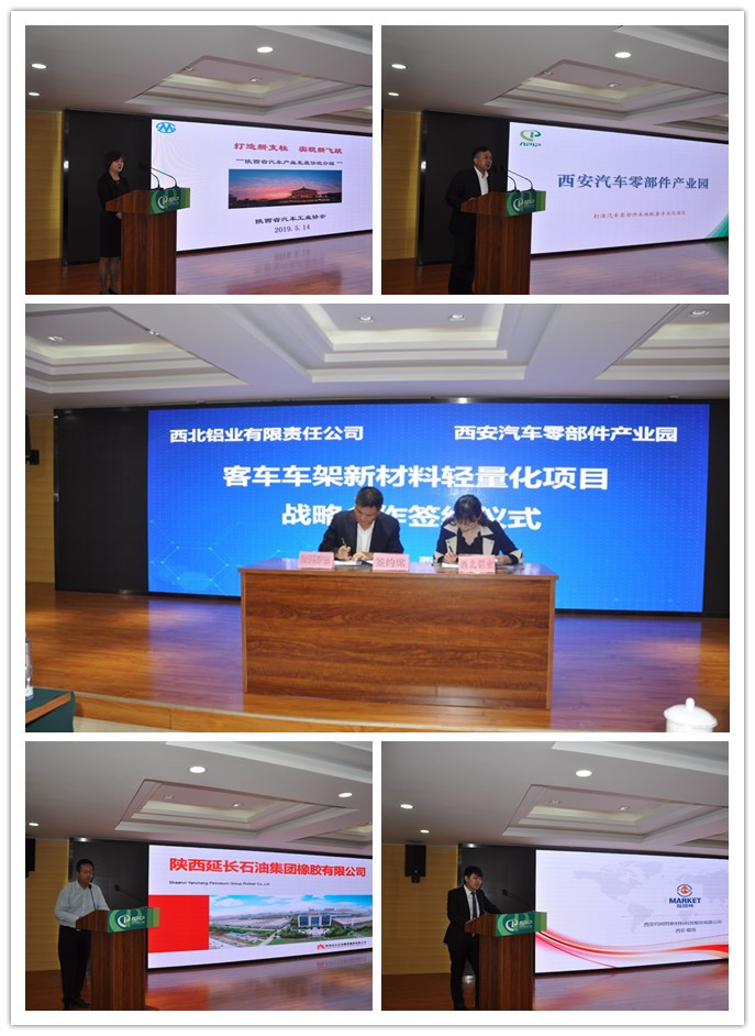 主办协办单位陕西汽车工业协会、西安汽车零部件产业园、西安玛珂特新材料科技股份有限公司,供应链企业代表陕西延长石油集团橡胶有限公司分别就陕西汽车发展具体情况、产业园区规划、企业优势进行了发言。西安汽车零部件产业园与西北铝业有限责任公司举行“客车车架新材料轻量化项目”战略合作协议签字仪式,通过园区与企业深度合作,推动我省汽车供应链轻量化发展。