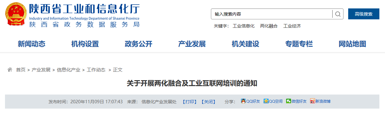 为深入贯彻落实《陕西省人民政府关于深化制造业与互联网融合发展的实施意见》和《陕西省人民政府办公厅关于深化“互联网+先进制造业”发展工业互联网的实施意见》,明确新时期两化融合的新使命、新要求,宣贯数字化转型暨两化融合管理体系贯标2.0相关内容,推进两化融合、发展工业互联网,助推制造业转型升级和高质量发展。经研究,决定开展两化融合及工业互联网培训,现将有关事项通知如下: