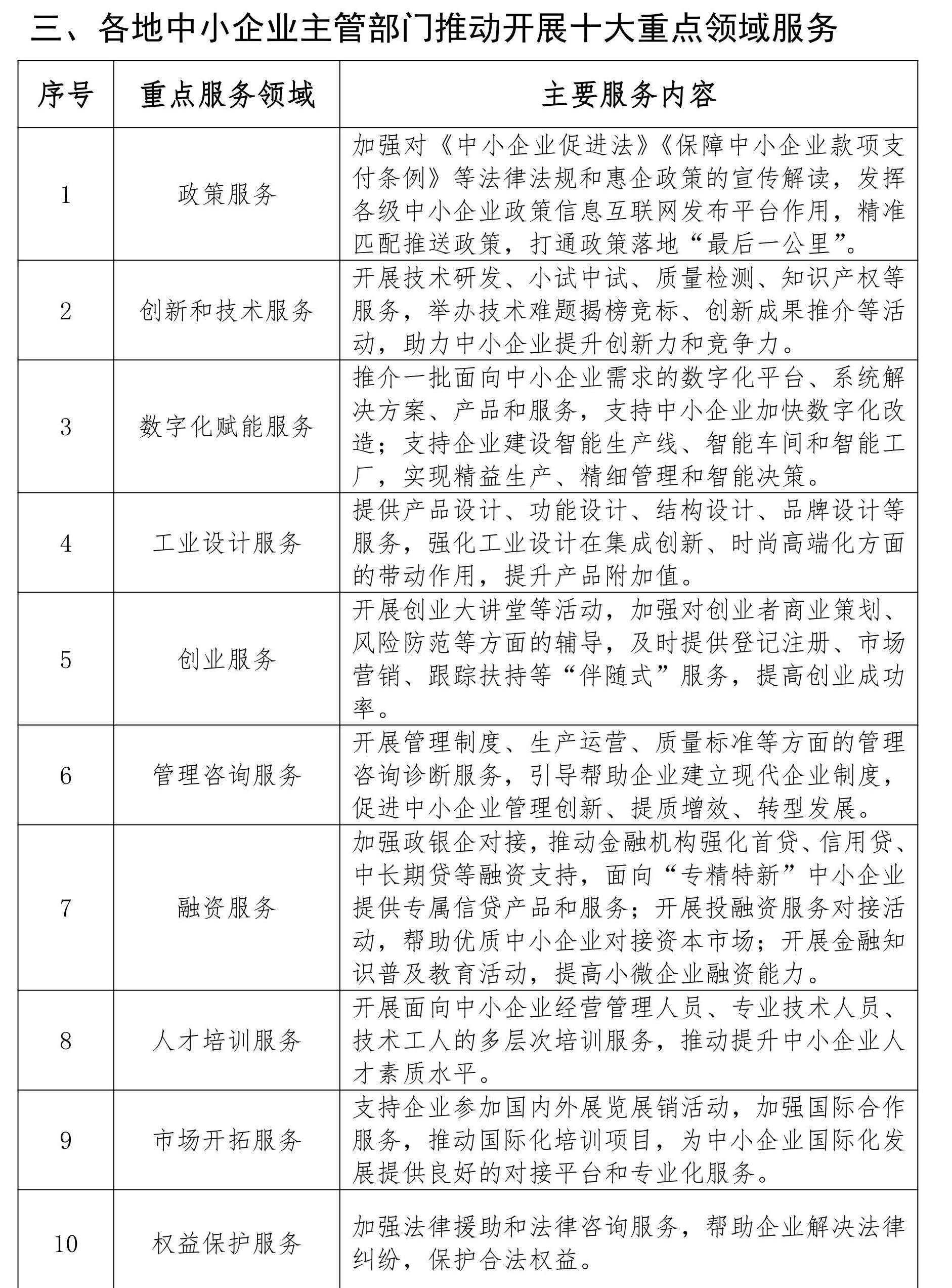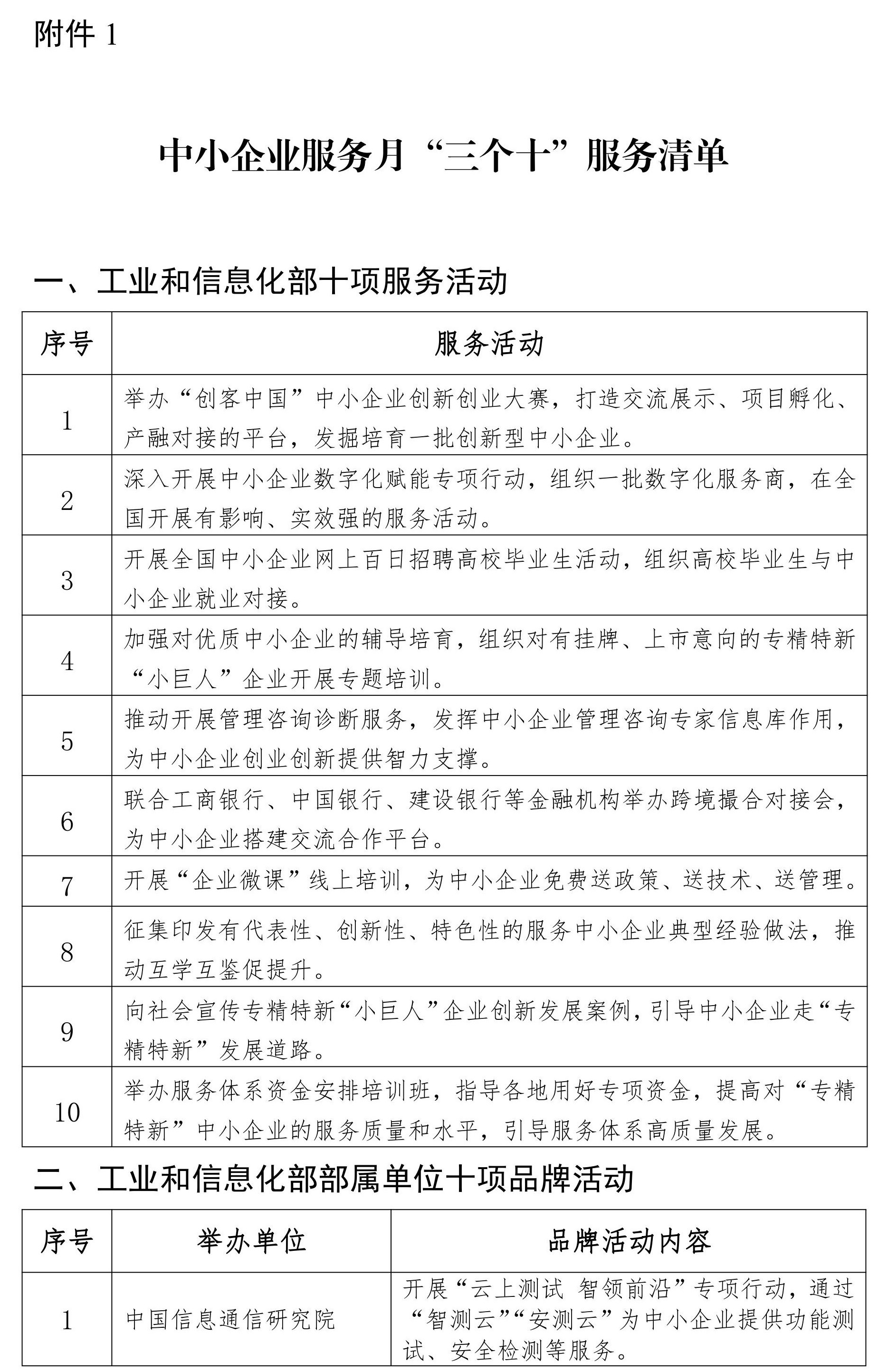 工业和信息化部近日印发通知,部署6月1日至30日在全国范围开展中小企业服务月活动。要求各地中小企业主管部门、有关单位充分发挥中小企业服务体系作用,面向广大中小企业开展有创新性、针对性和实效性的服务活动,加强对中小企业创新创业等方面的服务支撑,帮助中小企业纾困解难,促进中小企业高质量发展。活动将紧紧围绕中小企业需求,重点开展“三个十”服务,即工业和信息化部开展十项服务活动,部属单位举办十项品牌活动,各地中小企业主管部门推动服务体系开展十大重点领域服务。