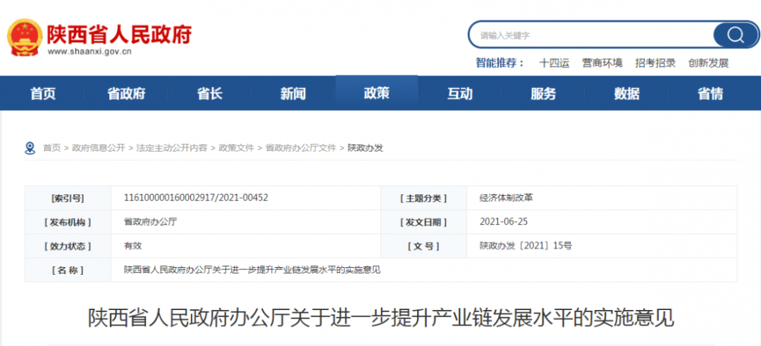 为深入贯彻习近平总书记来陕考察重要讲话精神,推动经济高质量发展迈出更大步伐,让工业成为稳增长和高质量发展的主动力,经省委、省政府同意,现就提升“十四五”期间产业链发展水平提出以下意见。坚持以习近平新时代中国特色社会主义思想为指导,全面贯彻习近平总书记来陕考察重要讲话精神,把握新发展阶段,贯彻新发展理念,构建新发展格局,以推动工业高质量发展为主题,以“锻造优势长板,补齐弱项短板,做强做大‘链主’企业,提升配套能力,攻克关键核心技术,夯实产业链基础,优化产业生态”为基本思路,着力提升重点产业链核心竞争力。力争到2025年,全省重点产业链总产值年均增速明显高于规上制造业平均水平,单位增加值能耗明显低于规上工业单位增加值能耗,省内配套能力显著提升,着力打造一批具有较强国际竞争力的“链主”企业和隐形冠军企业,培育形成一批世界一流、全国领先、陕西特色的产业集群。1.明确重点产业链。根据我省产业实际,围绕六大支柱十四个重点产业领域,考虑产业规模、现有优势、发展潜力等因素,筛选出数控机床、光子、航空、重卡、生物医药、钛及钛合金、新型显示、集成电路、太阳能光伏、输变电装备、乳制品、民用无人机、氢能、增材制造、钢铁深加工、乘用车(新能源)、物联网、富硒食品、煤制烯烃(芳烃)深加工、铝镁深加工、陶瓷基复合材料、智能终端、传感器等23条重点产业链。根据全省产业链发展情况,重点产业链可适时增加。(省工业和信息化厅负责)2.推动实施“链长制”。数控机床、光子、航空等11条标志性重点产业链由省级领导担任“链长”(附件1),其他12条重点产业链由相关省级部门领导担任“链长”(附件2),各产业链的“链长”作为牵头人,主要负责统筹协调,推动提升产业链发展水平。每个产业链建立一个工作专班、制定一个提升方案和全景图谱、组建一个专家团队。各市(区)结合自身产业发展基础、资源禀赋、区位条件等,在省重点产业链提升工作领导小组和各产业链责任部门的指导下,因地制宜选择重点发展的产业链,参照省级模式建立工作机制,配合对应的省级产业链开展提升工作。(各重点产业链责任部门、各设区市政府按职责分工负责)3.支持“链主”企业做强做大。每条产业链梳理1—3家“链主”企业,鼓励“链主”企业投资开发成片土地,在取得土地后依照规划进行综合开发;支持“链主”企业围绕自身技术需求、市场需求,引进和培育配套企业;支持重点产业链上的中小企业开展智能化、绿色化、数字化改造提升。(省自然资源厅、各重点产业链责任部门按职责分工负责)4.推动产业链核心技术攻关。引导企业加大研发投入,对企业年度研发投入增量部分按照一定比例予以奖励;围绕产业链部署创新链,鼓励“链主”企业联合上下游企业组建创新联合体,带动上下游中小企业创新发展;在我省重点产业领域实行“揭榜挂帅”,鼓励企业、高校、科研院所开展联合攻关。(省科技厅、省工业和信息化厅按职责分工负责)5.实施一批科研成果产业化项目。完善科研成果发现、收集、筛选、分析机制,建立分产业分行业的科技成果产业化项目清单;支持高校、院所围绕产业链需求,向企业提供技术服务、转让科技成果;支持一批补短板、“卡脖子”关键核心技术项目产业化,形成一批国产替代产品,不断提升产业链竞争力。(省科技厅、省工业和信息化厅按职责分工负责)6.强化产业链招商补链延链。按照“缺什么招什么、什么弱补什么”的原则,聚焦产业链短板弱项,紧盯目标企业,开展定向招商、填空招商和点对点招商;针对产业链“短链”“细链”等问题,鼓励我省产业链企业通过投资(参股)、并购、重组、外包服务的方式获得先进适用技术。(省委军民融合办、省发展改革委、省科技厅、省工业和信息化厅、省农业农村厅、省商务厅、省国资委按职责分工负责)7.推动产业链上下游企业融通发展。支持一批制造业单项冠军、专精特新“小巨人”企业和“专精特新”中小企业加快发展,不断提升产业链企业专业化能力;鼓励供应链企业为产业链上下游企业提供质量管理、追溯服务、金融服务、研发设计、采购分销等拓展服务。(省工业和信息化厅负责)8.加大产业链重点企业重大项目支持力度。每条产业链每年遴选5—10个非“两高”重点建设项目,按照固定资产实际投资额的一定比例给予奖补;对产业链单个企业年度产值首次达到100亿元、500亿元、1000亿元的,一次性分别给予进档奖励;开辟绿色通道,依法支持各产业链重点建设项目前期手续办理。(省发展改革委、省工业和信息化厅、省财政厅、各重点产业链责任部门按职责分工负责)9.强化产业链基础再造。针对每条产业链在核心基础零部件、核心电子元器件、工业基础软件、关键基础材料、先进基础工艺、产业技术基础体系等方面的薄弱环节开展攻关突破,实施一批产业基础再造工程项目;鼓励产业链“链主”企业发挥对产业生态的主导作用,率先采购、使用配套企业的创新产品,提升产业配套水平,加快推动重点产品工艺“一条龙”示范应用。(省工业和信息化厅负责)10.加快重点产业链集群化发展。积极打造高端装备、电子信息、汽车、现代化工、医药、新材料等产业集群;引导产业链项目向各级各类园区集中,加