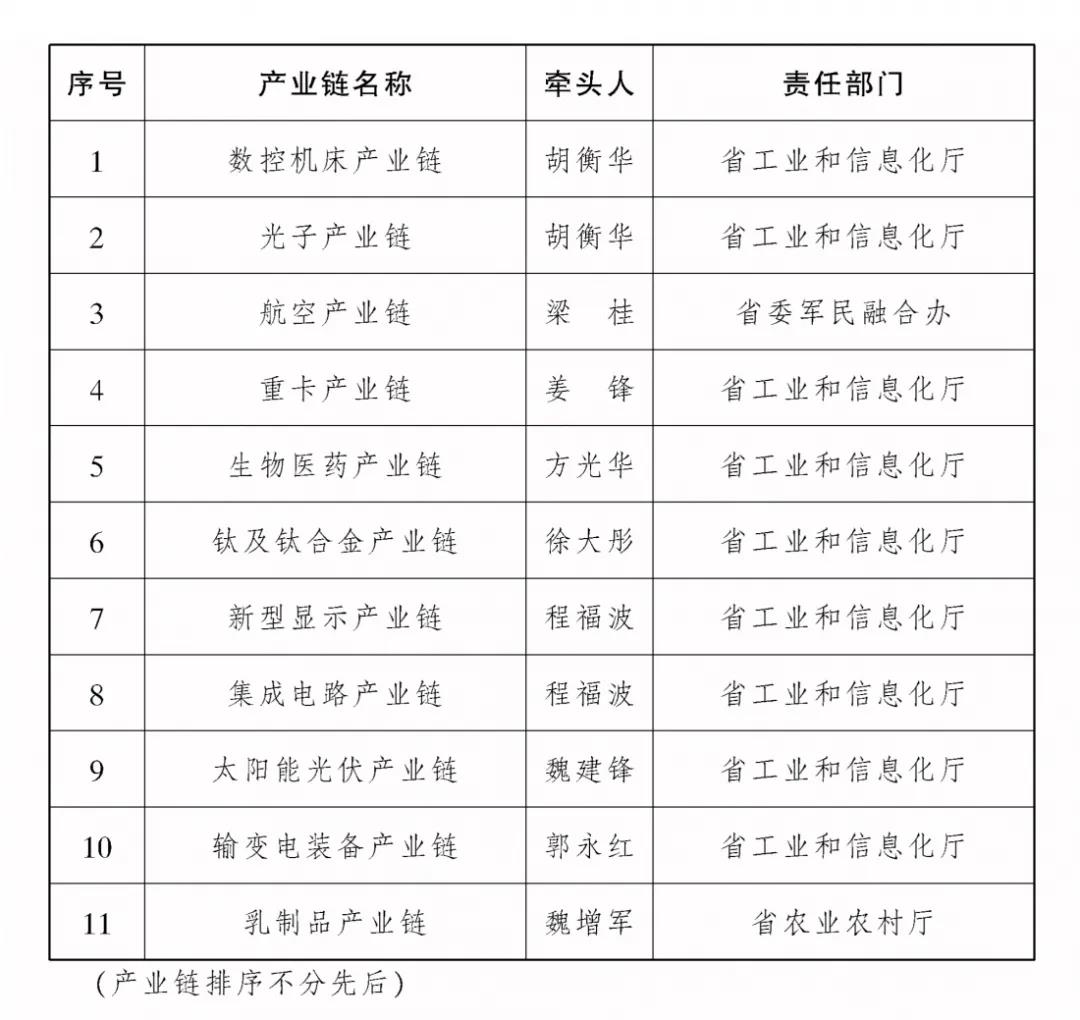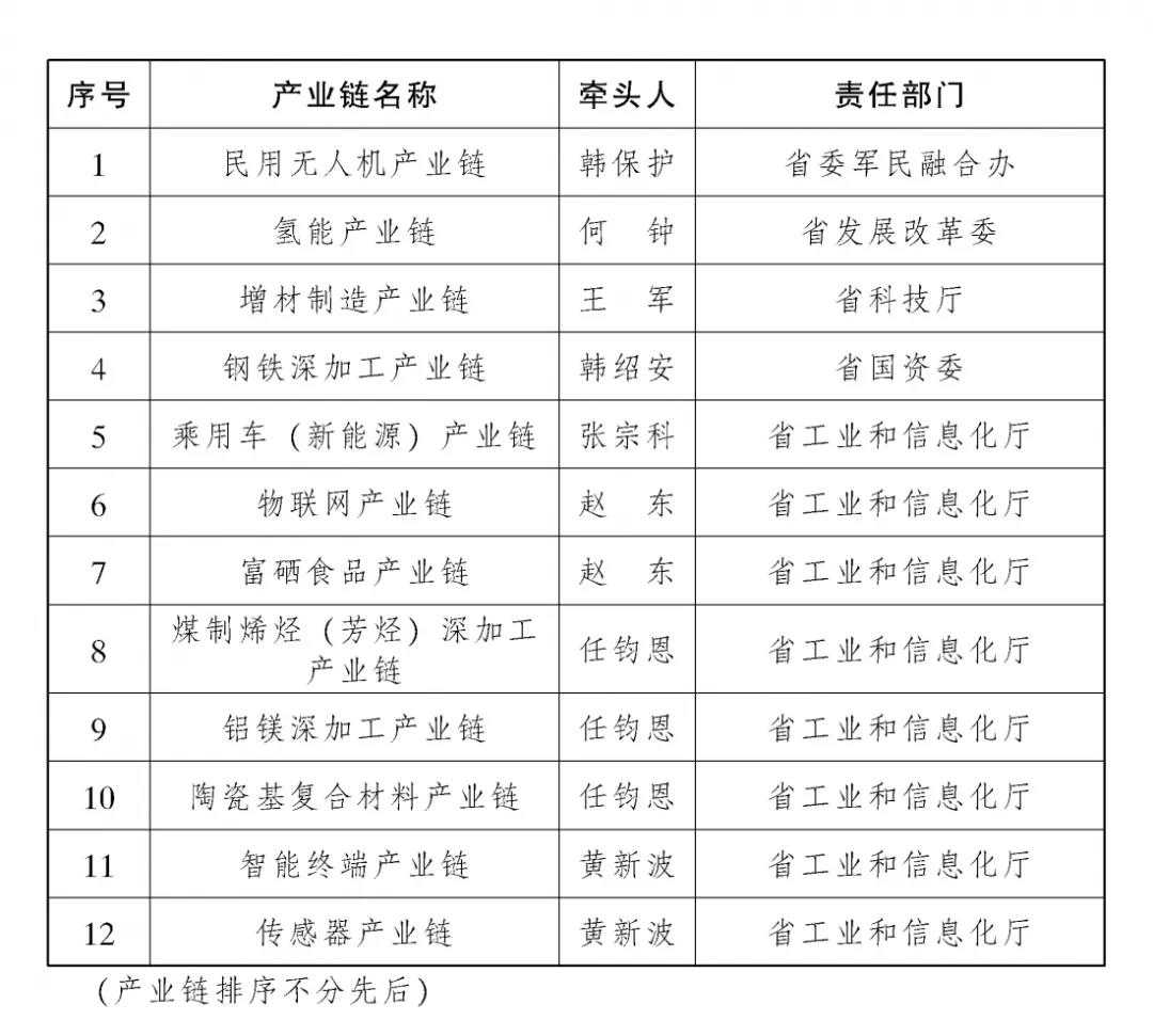 省级部门领导担任“链长”的12条重点产业链清单