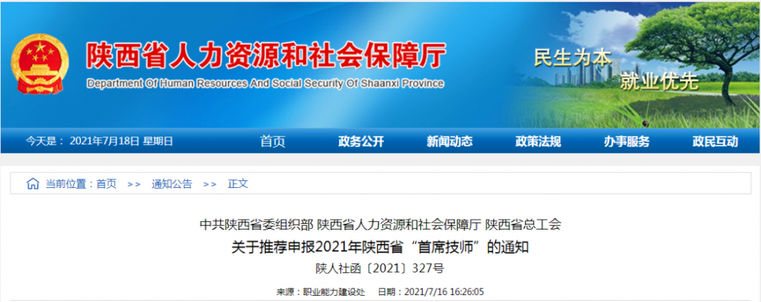 为深入贯彻落实习近平总书记对技能人才工作重要指示精神,褒奖为我省经济社会发展做出突出贡献的优秀高技能人才,增强技能人才获得感、自豪感、荣誉感,激发积极性、主动性、创造性,根据省委办公厅、省政府办公厅《关于印发〈陕西省“三秦工匠计划”实施办法〉的通知》(陕办发〔2018〕20号),结合全省高技能人才队伍建设统筹安排,现就做好2021年度陕西省“首席技师”推荐工作通知如下: