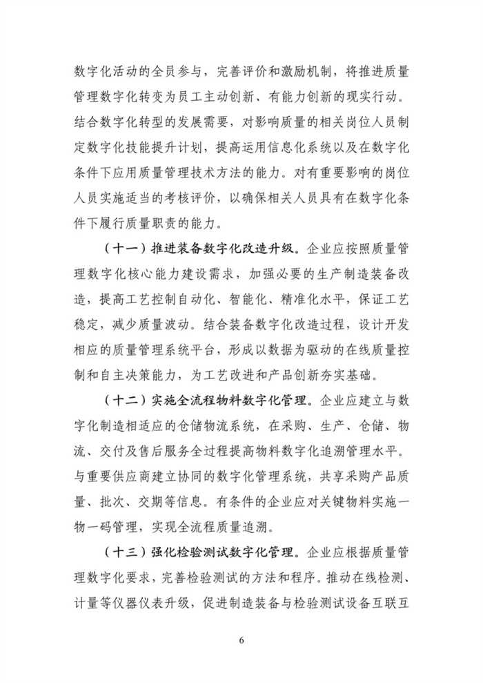 为进一步引导制造业企业深化新一代信息技术与质量管理融合,以数字化赋能企业全员全过程全方位质量管理,提升产业链供应链质量协同水平,我部组织编制了《制造业质量管理数字化实施指南(试行)》。现印发给你们,请推动企业组织实施。