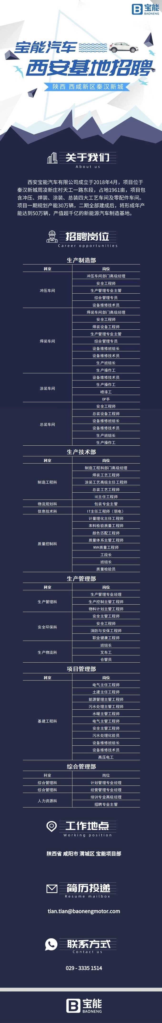 宝能汽车西安基地大范围社会招聘