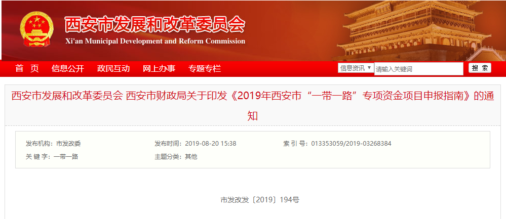 2019年西安市“一带一路”专项资金项目申报指南