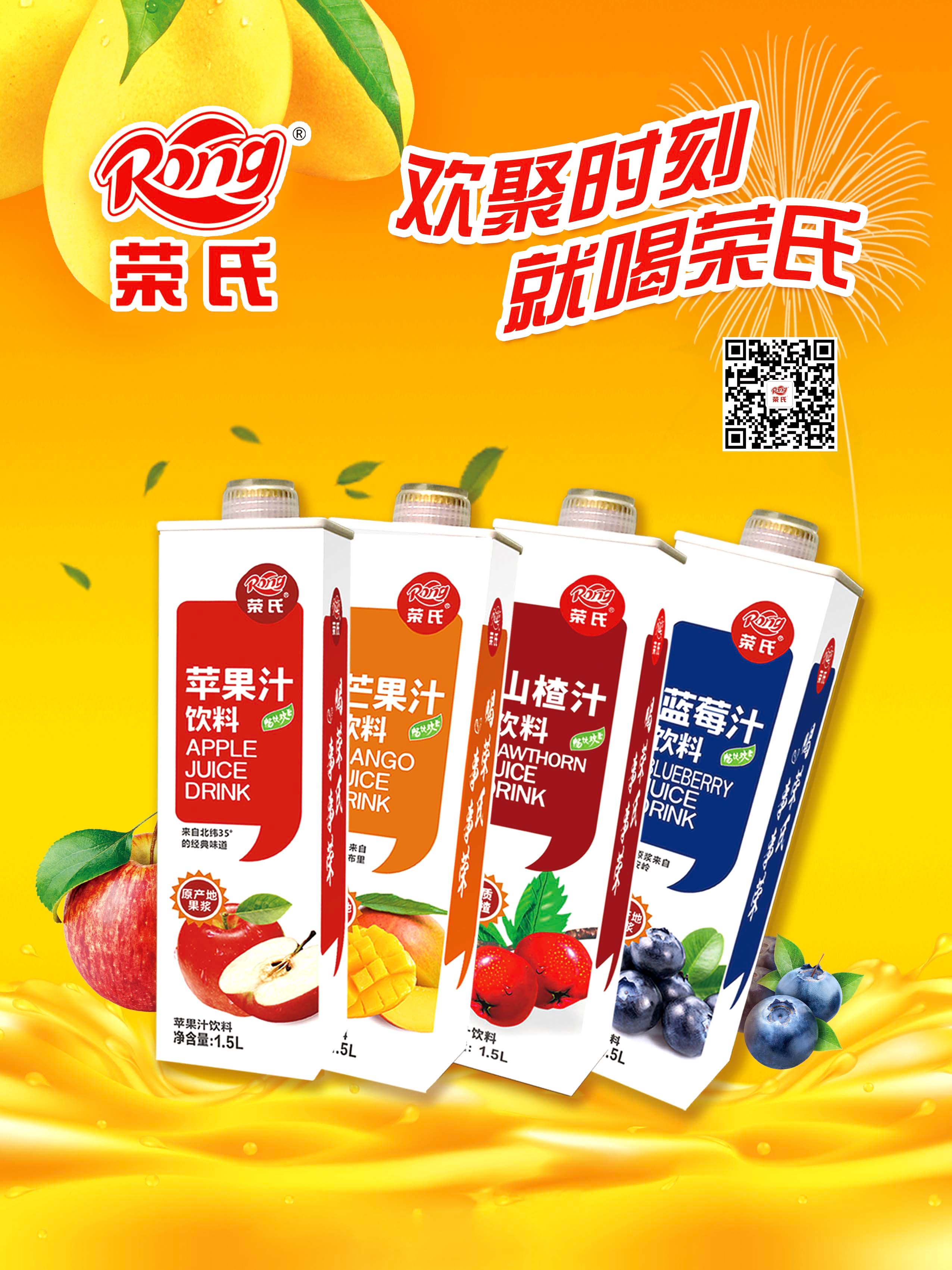 目前有红苹果、青苹果、活力香橙、甜美蜜桃、me菠萝、青梅、荔枝、哈密瓜等多个口味的产品。2012年12月授予荣氏果汁西安名牌产品;2012年12月“荣氏”商标被认定为陕西省著名商标;2014年12月“荣氏”商标被认定为西安市著名商标;2015年1月陕西省消费者协会授予陕西荣氏食品有限公司“消费教育示范基地”;2016年1月,秦商联合会授予陕西荣氏食品有限公司“2015年度全球秦商回乡投资奖”。