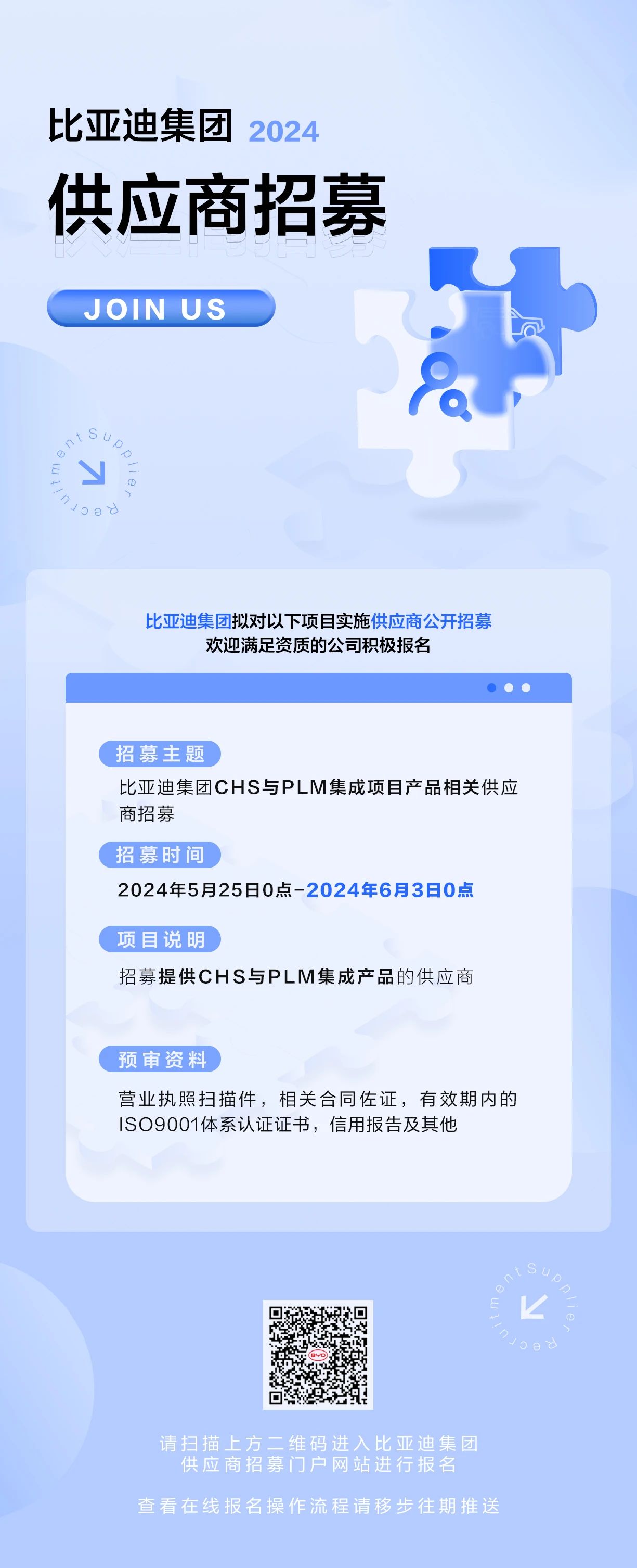 比亚迪集团CHS与PLM集成项目产品相关供应商招募公告
