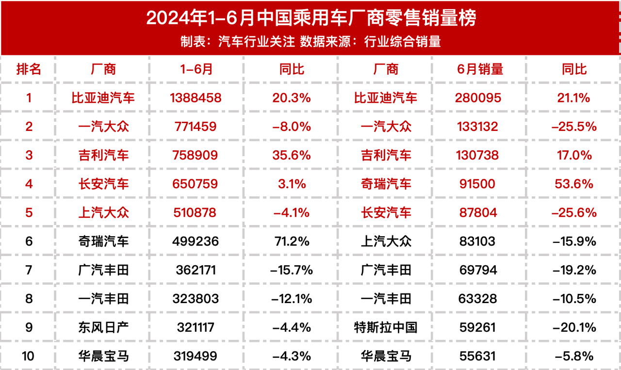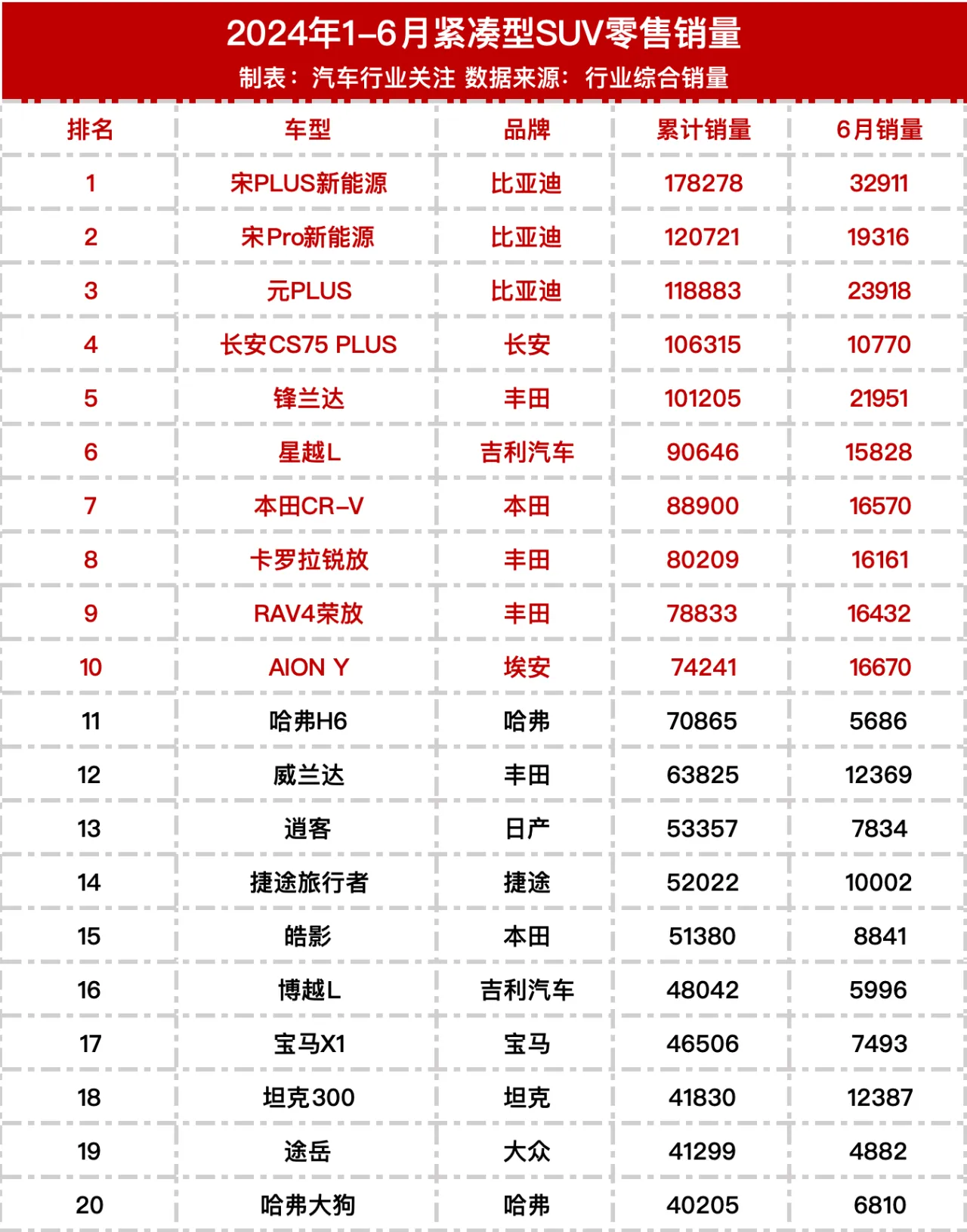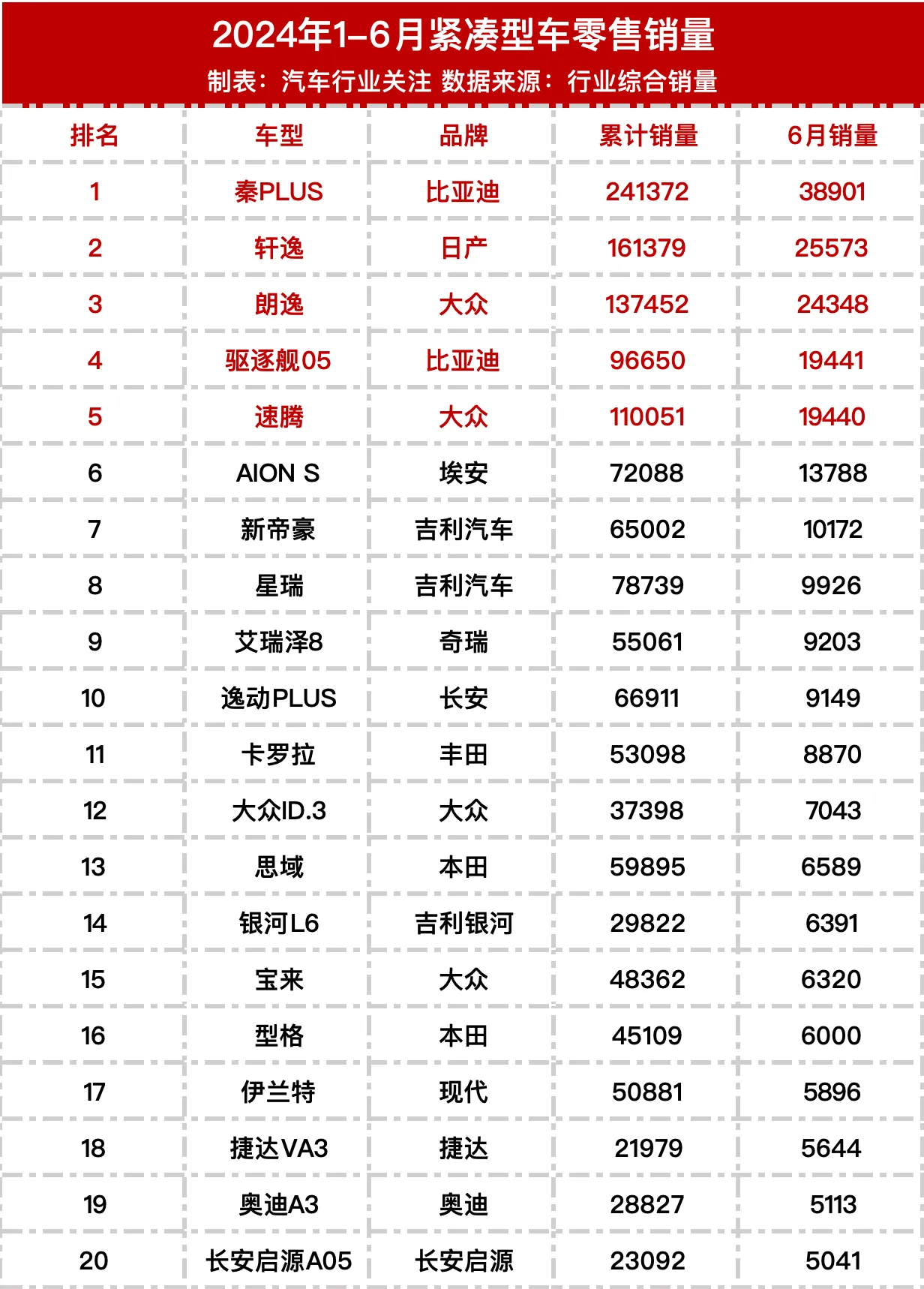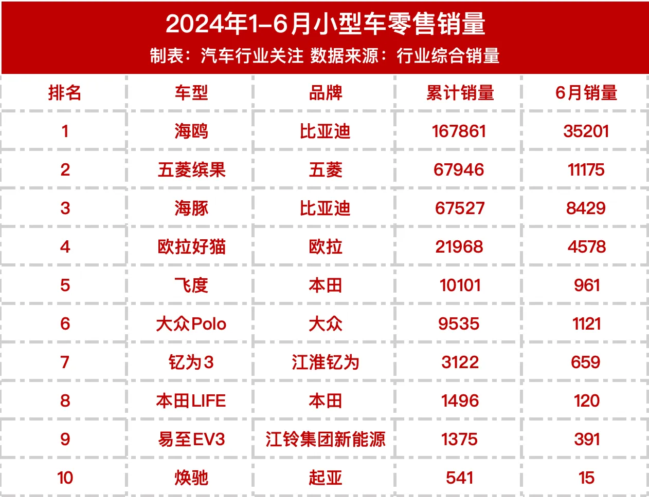上半年车型销量排行榜