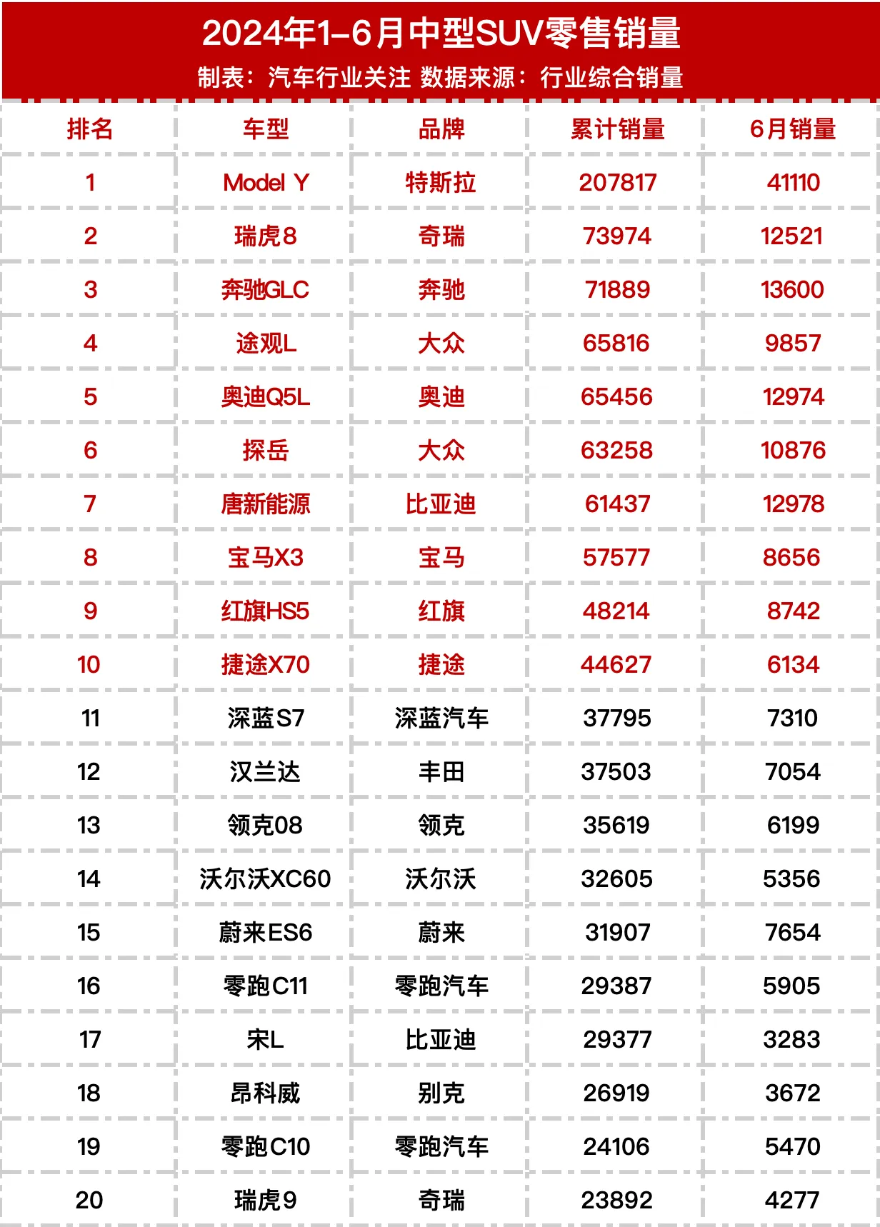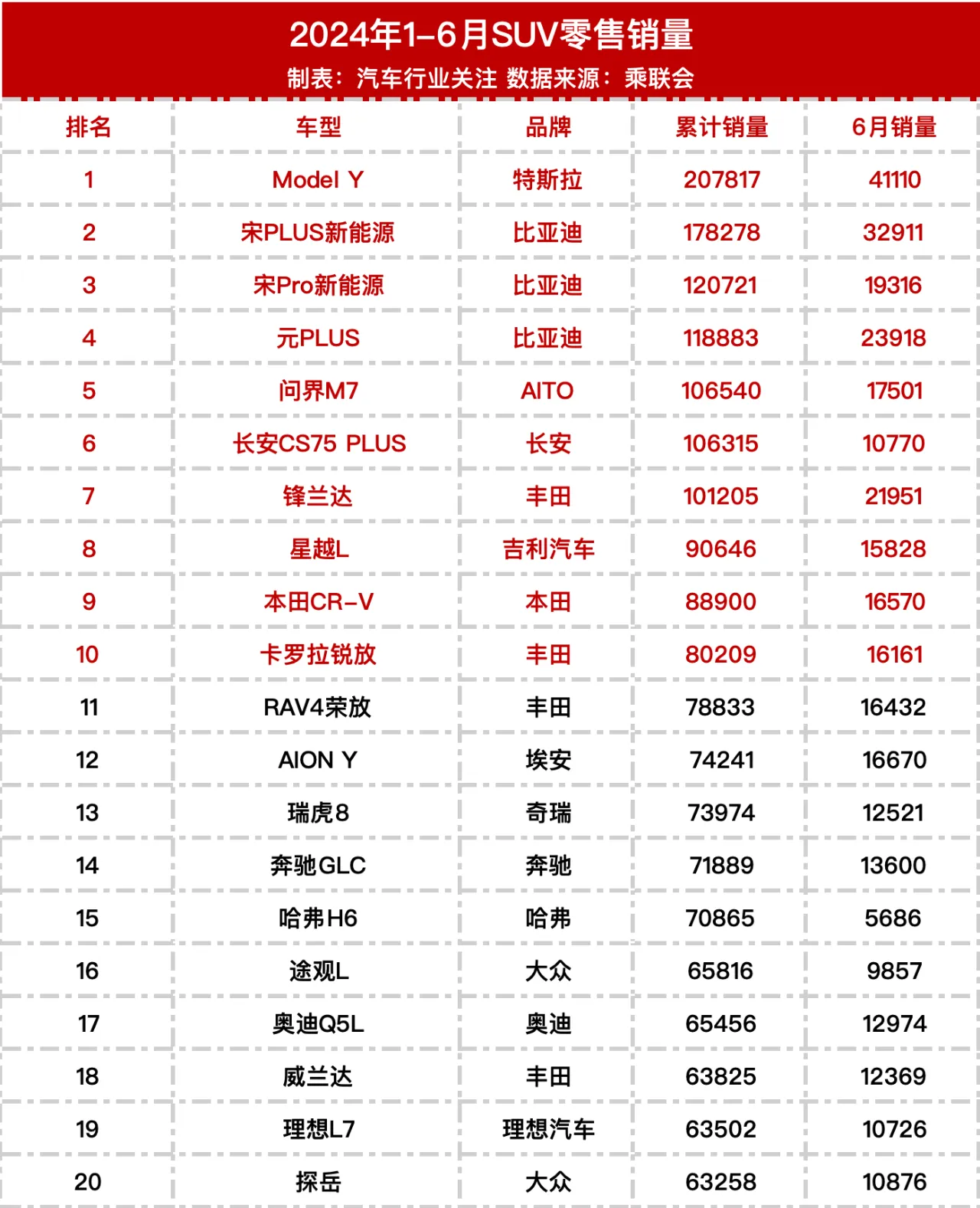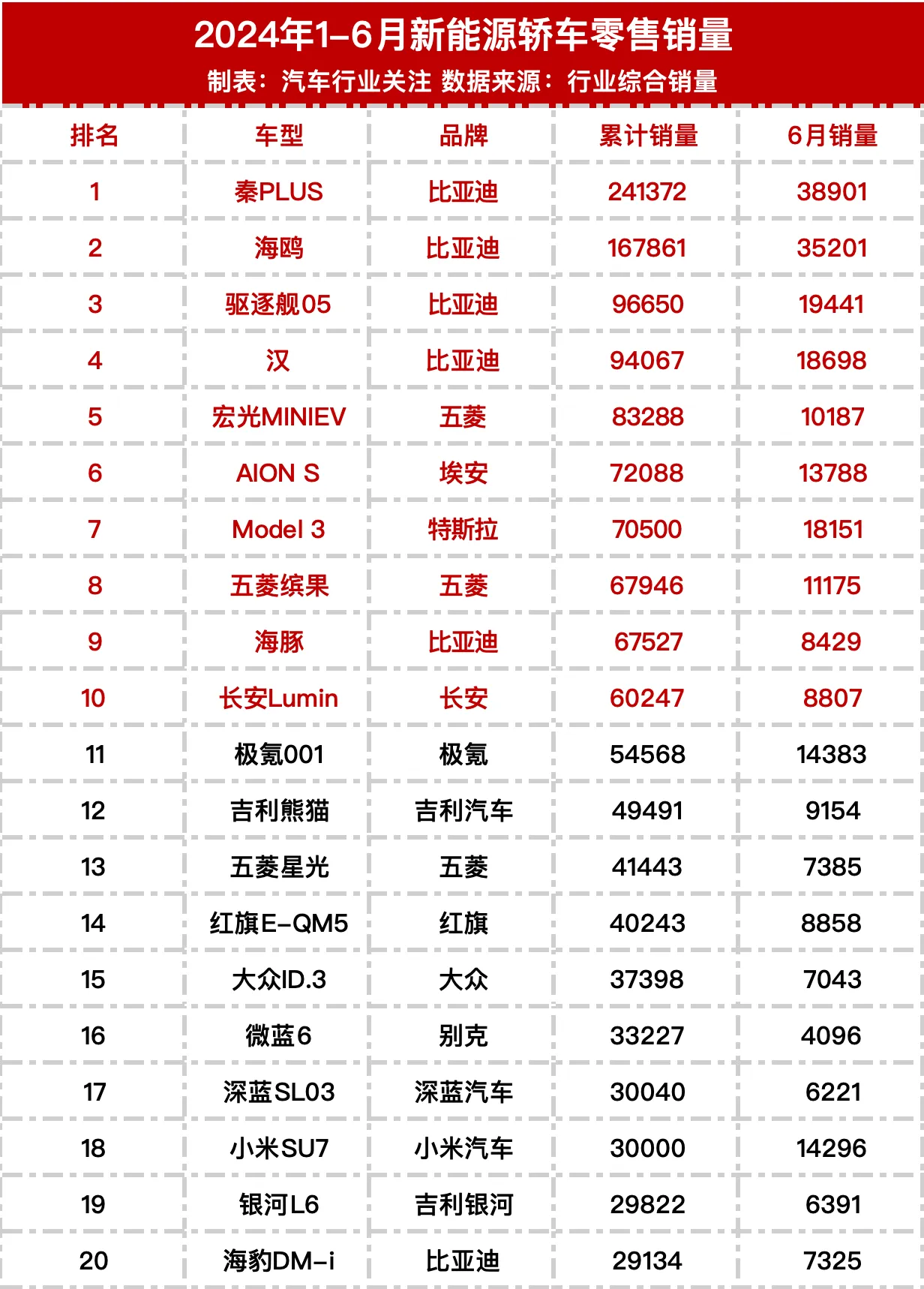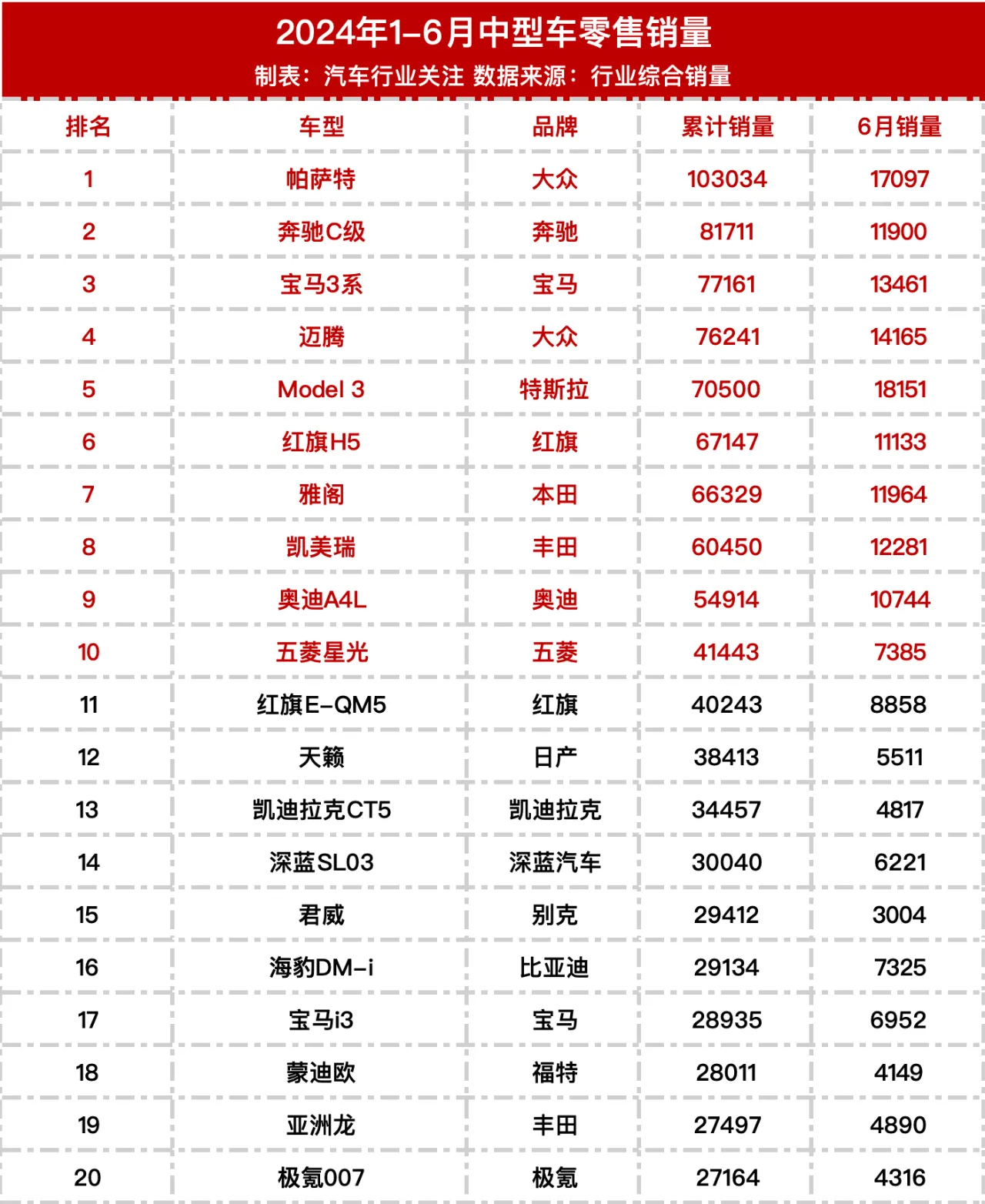 上半年车型销量排行榜