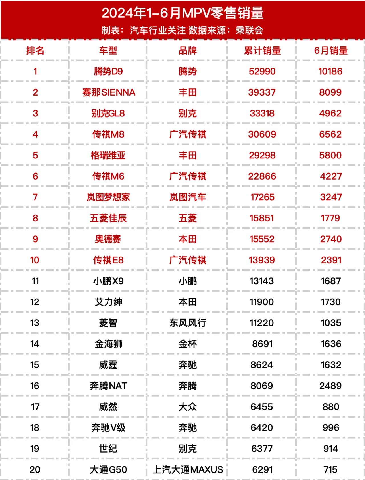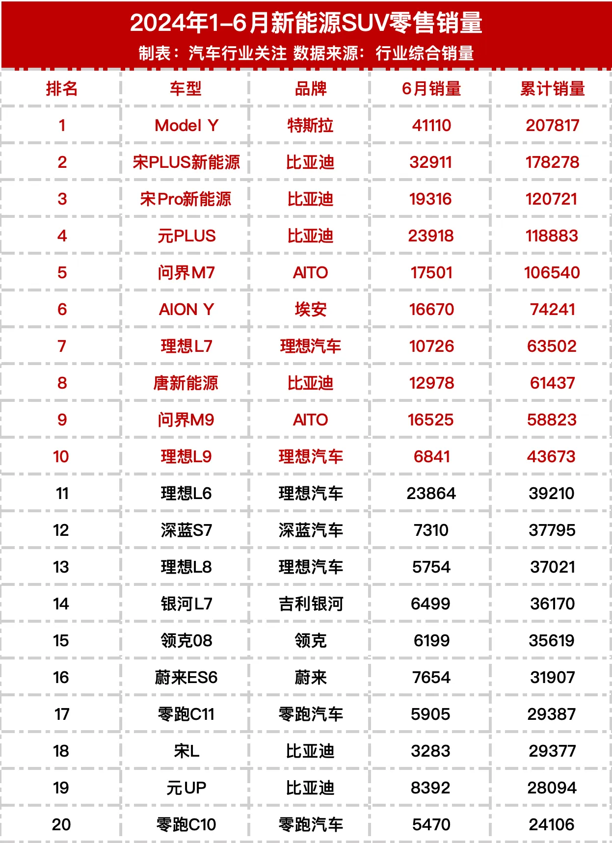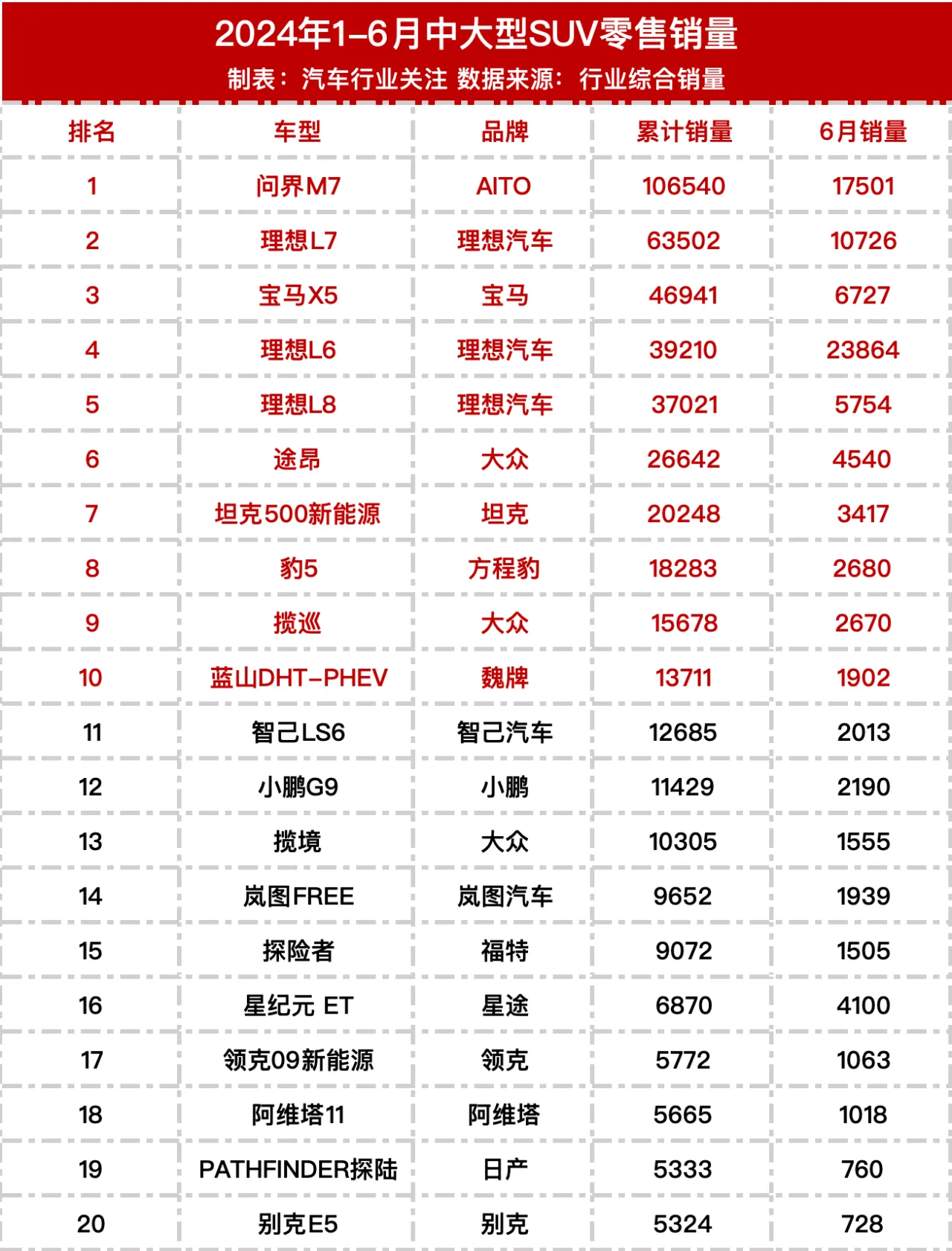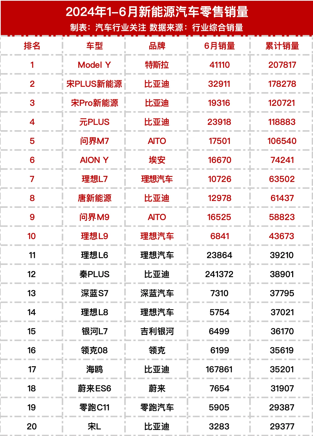 上半年车型销量排行榜