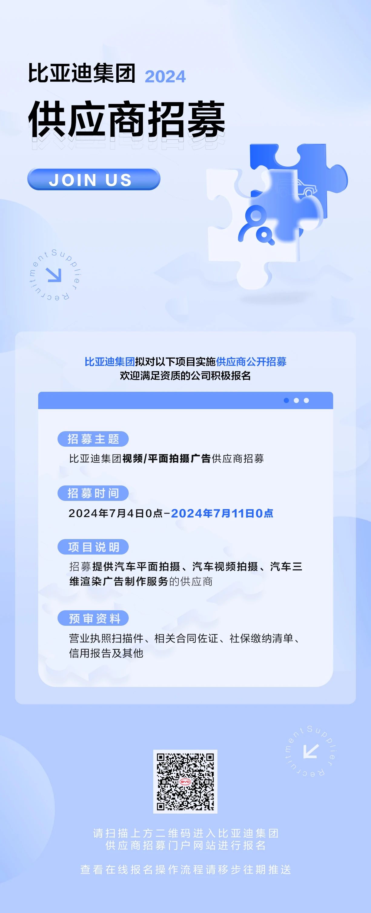 比亚迪集团视频/平面拍摄广告供应商招募公告