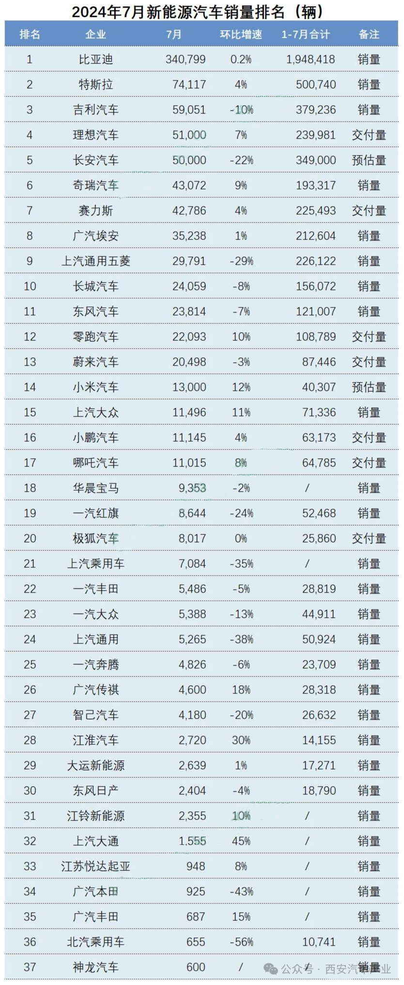 根据初步数据,这些6月新能源销量万辆以上厂商企业的7月预估销量为86万辆,按照上月结构占比预测7月的全国新能源乘用车批发销量在95万辆,同比增长29%,环比下降3%,新能源渗透率达到50%。