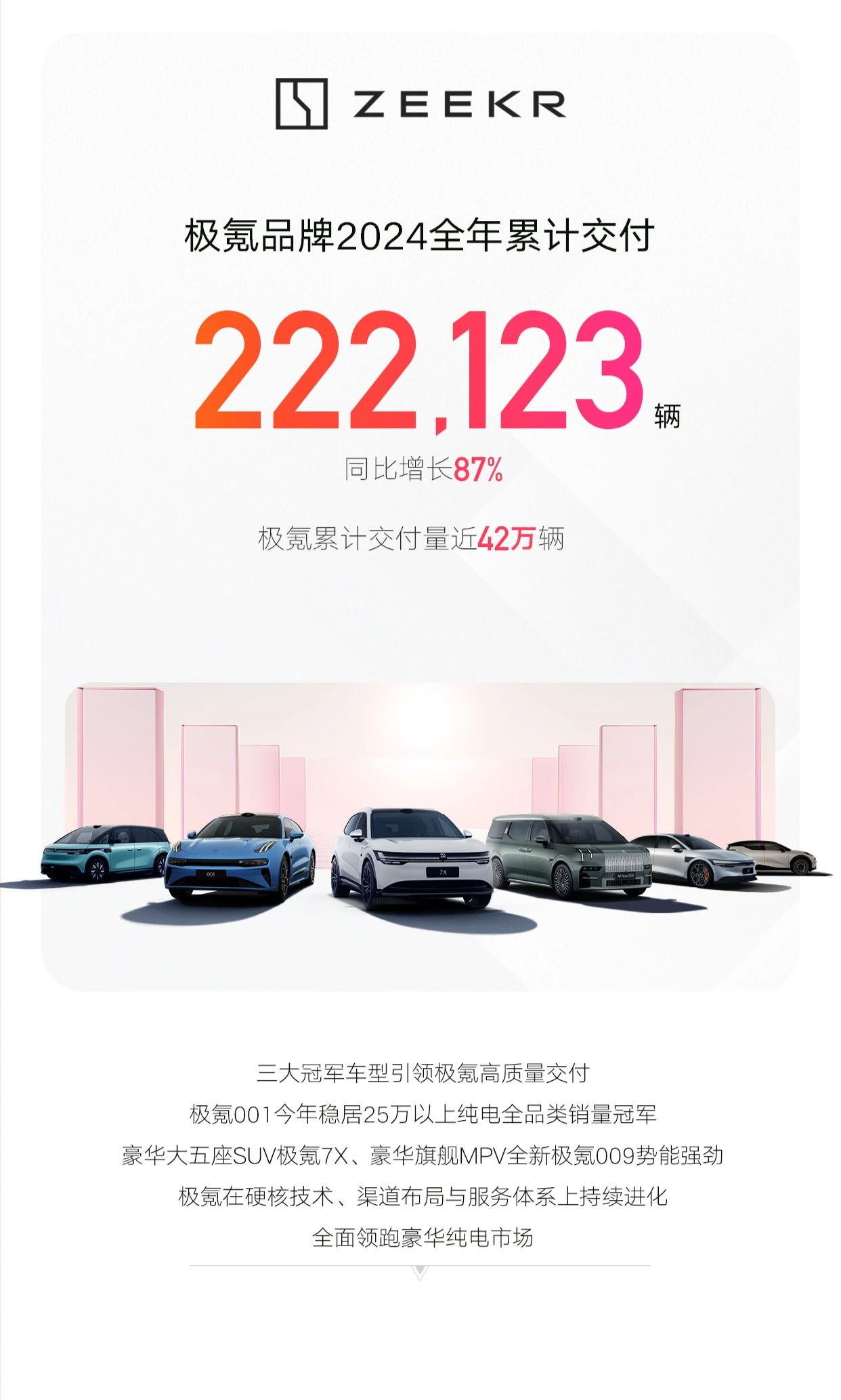吉利汽车2024年销量超217万辆,新能源大增92%。2025年目标:271万辆
