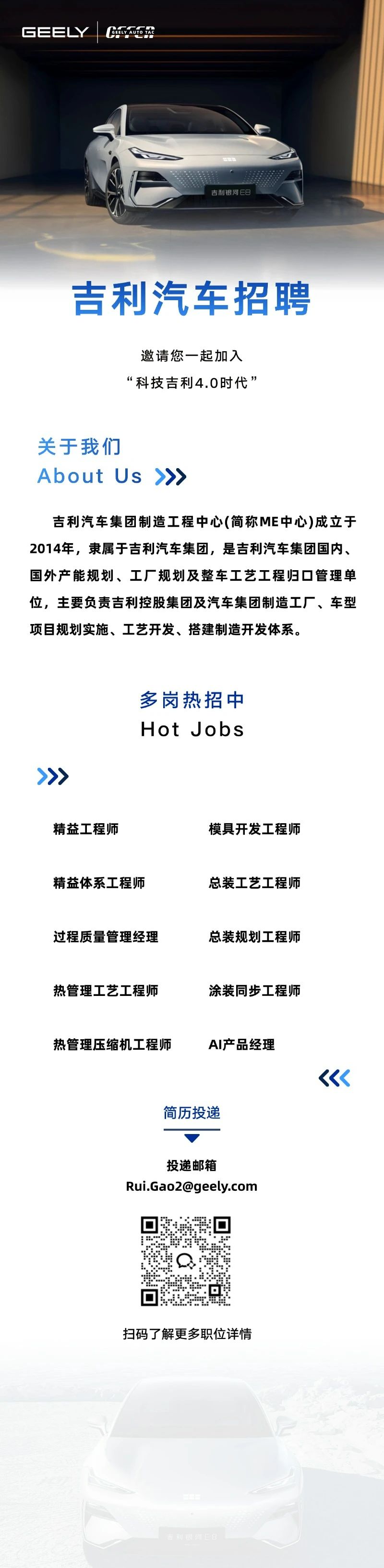 吉利汽车集团 制造工程中心 - 热招职位