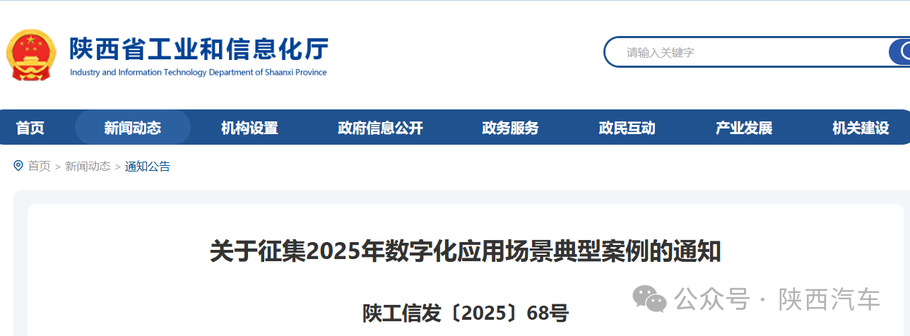 为贯彻落实《陕西省加快推进数字经济产业发展实施方案(2021-2025年)》,推进工业数字化实践创新,现组织征集2025年数字化应用场景典型案例。有关事项通知如下: