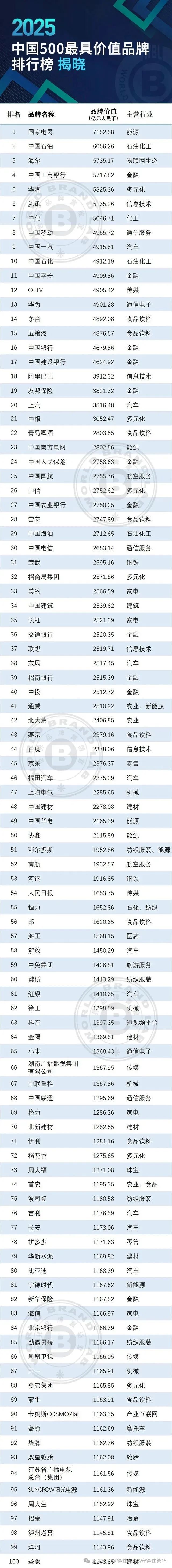 2025中国500最具价值品牌排行榜