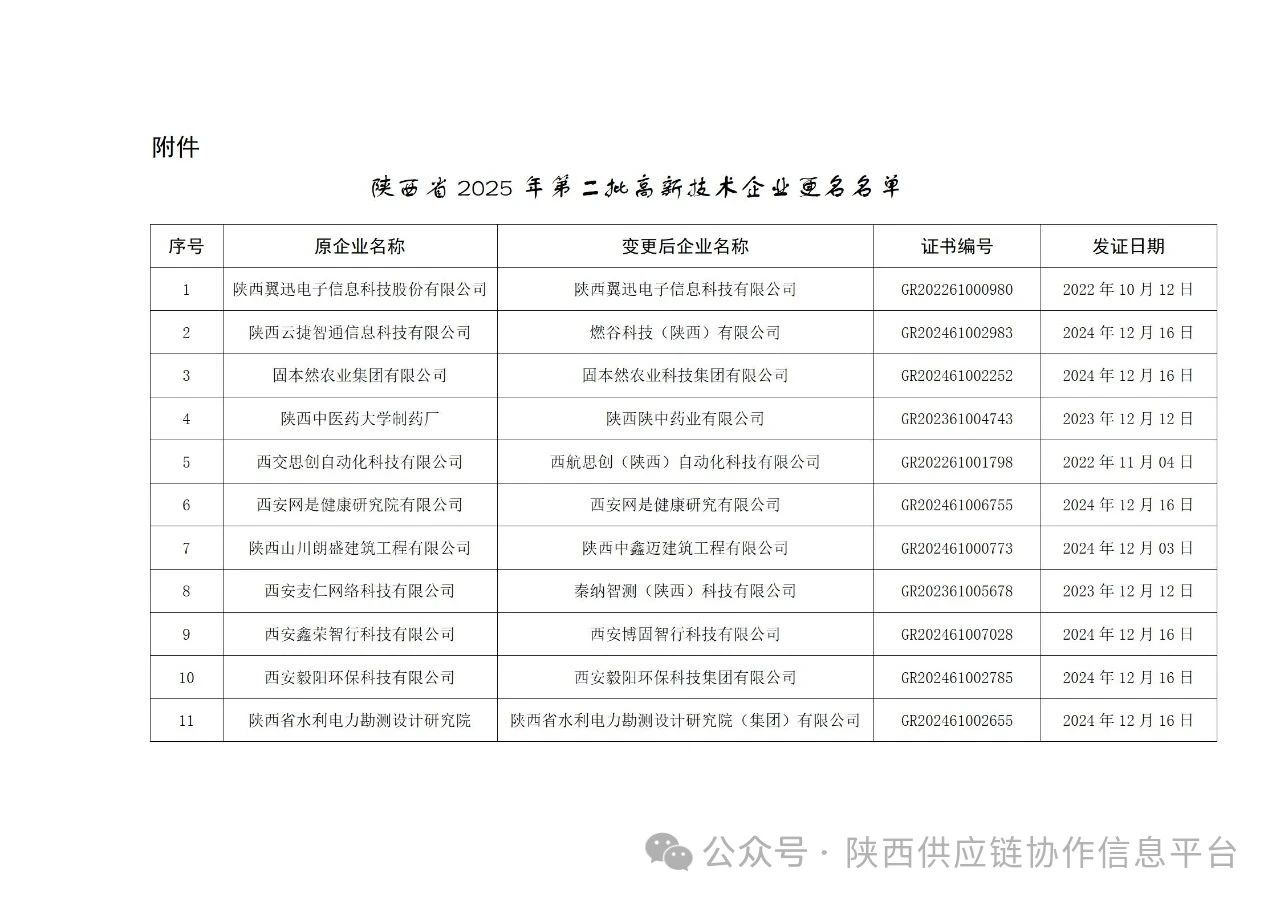 附件:陕西省2025年第二批高新技术企业更名名单