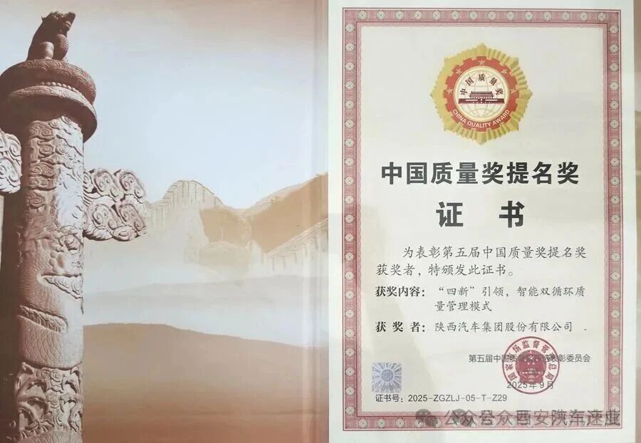 9月16日-17日,国家市场监督管理总局召开中国质量大会,中国质量领域的最高荣誉第五届中国质量奖在会上正式颁发。陕西汽车集团股份有限公司(以下简称“陕汽”)凭借“‘四新’引领,智能双循环质量管理模式”再次荣获中国质量奖提名奖。这一荣誉是对陕汽在全面质量管理、智能制造与持续创新方面的高度认可,彰显了企业在高质量发展道路上的显著成就。