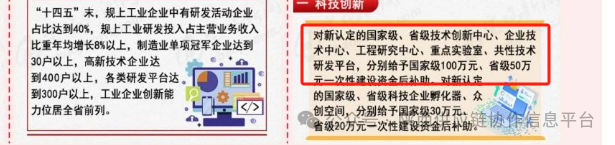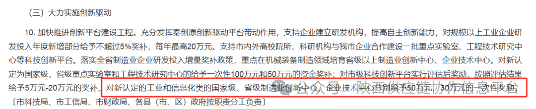 对新认定的工业和信息化类的国家级、省级企业技术中心分别给予50万元、30万元的一次性奖励。