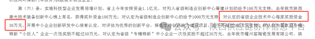 对认定的省级企业技术中心每家奖励资金30万元。