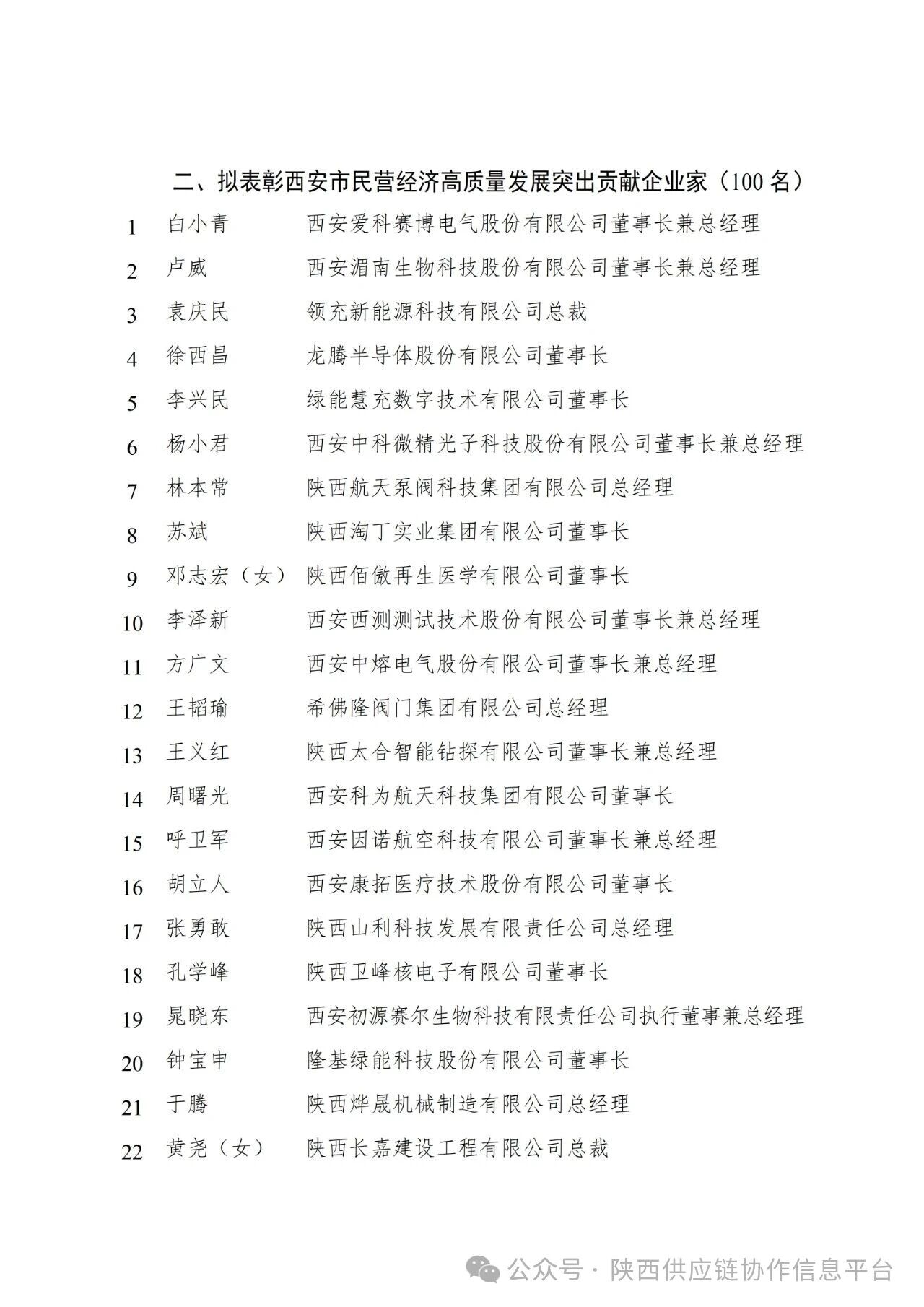 2、拟表彰西安市民营经济高质量发展突出贡献企业家(100名)