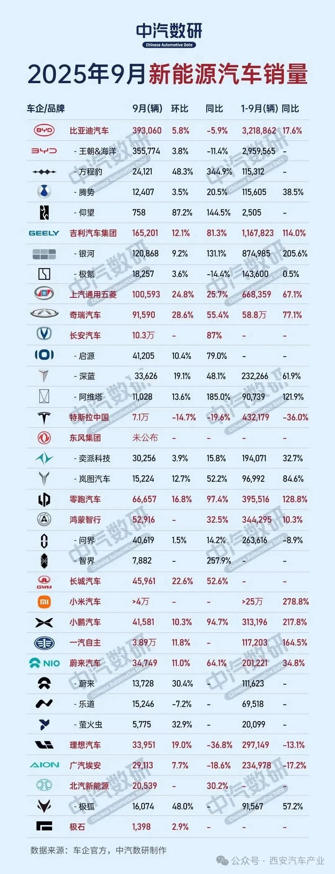 9月18家车企新能源汽车销量及品牌明细出炉!