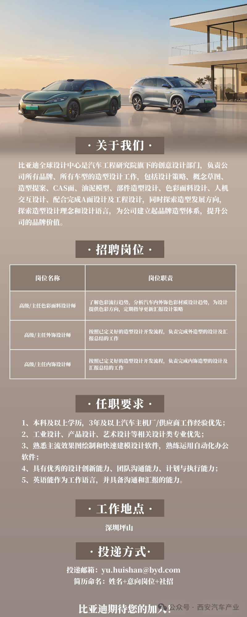 比亚迪社招|全球设计中心诚邀英才