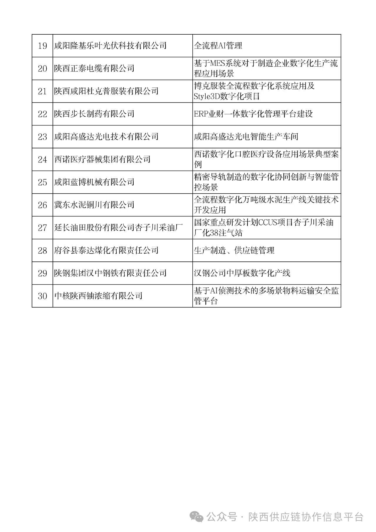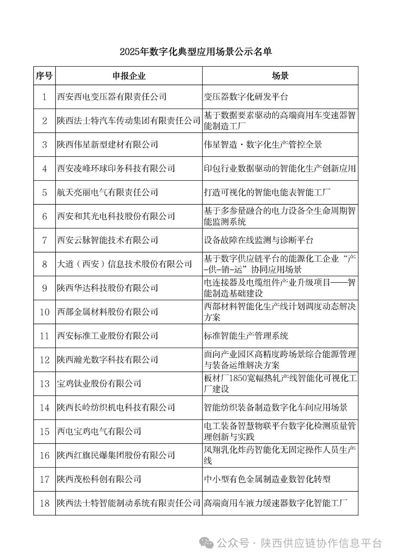 根据《关于征集2025年数字化应用场景典型案例的通知》(陕工信发〔2025〕68号)安排,经各设区市工业和信息化主管部门推荐,省工业和信息化厅组织专家评审和研究,现对拟列为2025年数字化典型应用场景的名单进行公示,如有异议,请书面反馈至省工信厅(大数据产业处)。