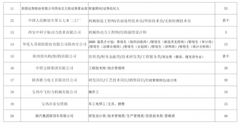 此外,为了在特殊时期帮助广大青年就业,满足企业用工需求,由团省委、陕西省青年就业创业服务网举办的“千校万岗•就业有位来”线上招聘活动国有企业招聘专场700多个岗位已出炉。