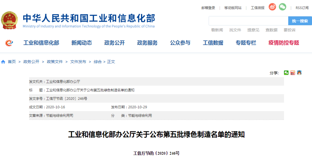 工信部 第五批绿色制造名单公布