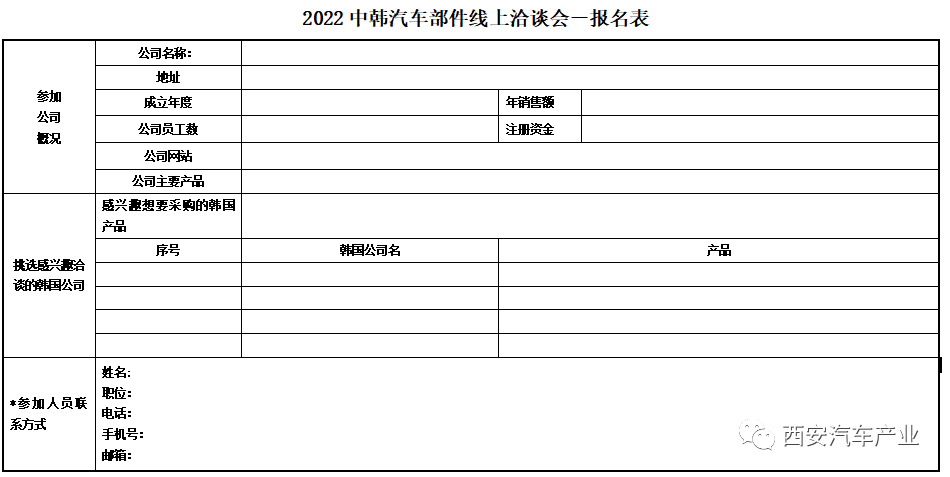 2、参会人员填写报名表。特别注意:挑选需要在线对接的韩国企业(可多选);填写清楚洽谈的日期和时间(预约韩国企业)。